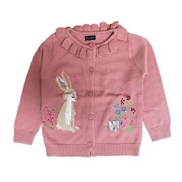 冬款女童粉色毛衣可愛卡通兔子針織保暖刺繡紐扣柔軟開衫毛線上衣