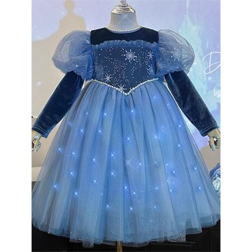 女童公主裙愛莎秋冬新款兒童生日禮服蓬蓬紗裙冰雪奇緣發光連衣裙