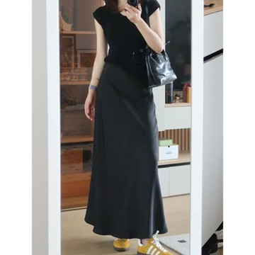 黑色魚尾半身裙梨形胖mm遮胯顯瘦高腰半裙小個子垂墜感包臀A字裙