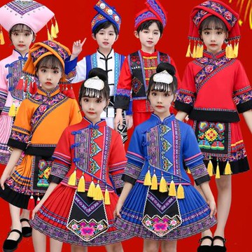兒童壯族服裝男女童六一兒童節服飾彝族苗族少數民族舞蹈表演出服
