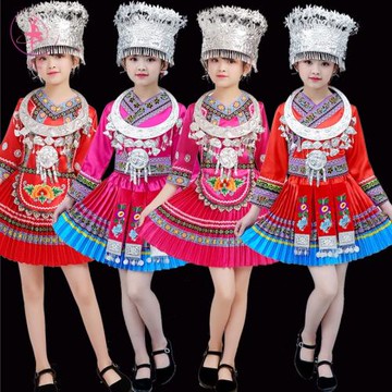 兒童苗族服裝演出服女童少數民族舞蹈土家族侗族表演服壯族三月三