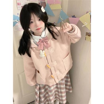 「謎兔少女」原創jk軟妹甜妹牛角扣加棉加厚秋冬外套寬松甜美