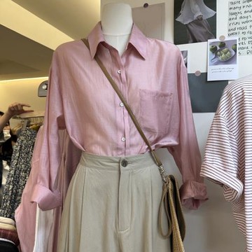 點我下載韓國東大門2025秋季新款韓版寬松翻領通勤休閑百搭天絲棉襯衣開衫