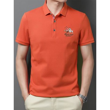純棉純色短袖t恤男大碼全棉中年寬松休閑刺繡珠地棉上衣翻領t恤衫
