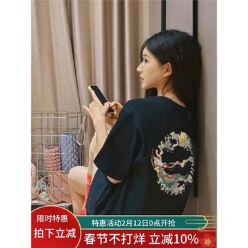 寬松大版中長款港風chic上衣下半身失蹤潮牌黑色短袖正肩t恤女夏