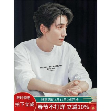 電影負負得正黃振開朱一龍同款白色長袖t恤男春秋季寬松休閑上衣