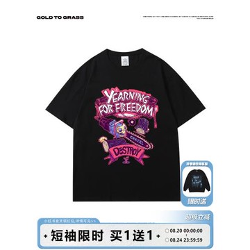 gtg原創美式高街嘻哈涂鴉印花純棉大碼寬松短袖T恤男潮牌潮流半袖