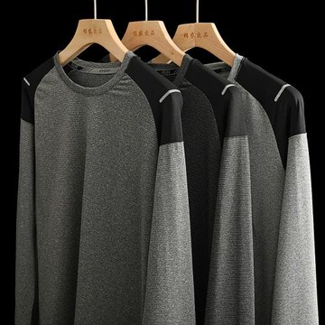 長鳳洲戶外 撞色拼接男士輕量運動速干健身彈力反光條休閑長袖T恤