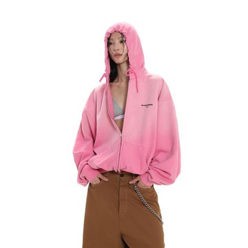 鞠婧祎楊冪同款24灰色閃粉發泡字母寬松加厚連帽拉鏈衛衣外套女秋