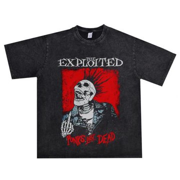 數碼直噴金屬搖滾THE EXPLOITED樂隊重磅純棉做舊T恤短袖寬松