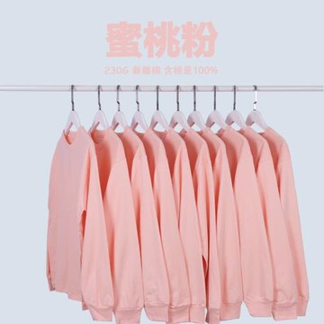 230G長袖T恤蜜桃粉淺粉圓領寬松男女情侶同款baby嫩粉色純棉上衣