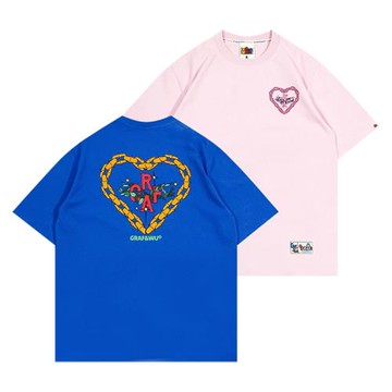 GRAF原創品牌字母組合植物愛心鎖鏈印花彩色寬松休閑寬松T恤短袖