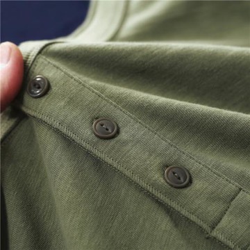 夏季竹節棉亨利領t恤男 美式復古亨利衫修身硬漢開領休閑短袖體恤