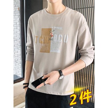 260克純棉長袖t恤男寬松春秋季潮流圓領秋衣打底衫學生內搭體恤衫
