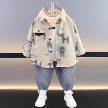 男童夏裝套裝洋氣兒童2024新款痞帥氣短袖花襯衫男孩夏季寶寶衣服