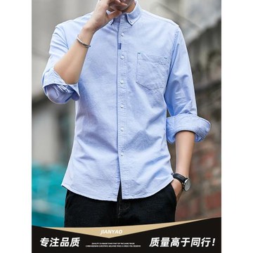 男士修身工作牛津紡襯衫外套秋季長袖襯衫9.9上衣韓版男裝襯衣服