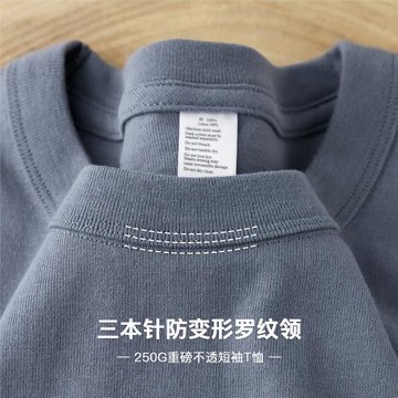 三本針!250g重磅純棉圓領短袖T恤 美式咔嘰寬松休閑半袖打底上衣
