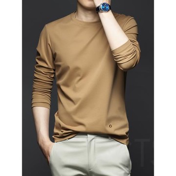高端男士長袖t恤2025新款春秋季純棉圓領修身高級感絲光棉打底衫