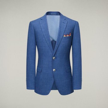 【澳嘉】西服男商務休閑正裝羊毛藍色新郎結婚禮服上衣男士小西裝