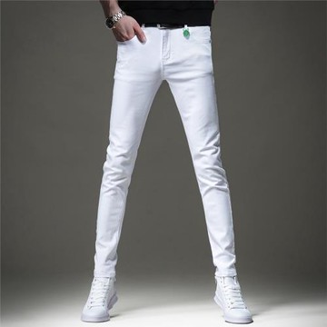 男生社會小伙純白色彈力低腰修身牛仔褲青年學生日常休閑小腳褲