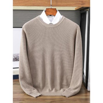 秋冬新款精梳純棉線男士針織打底衫圓領套頭加厚保暖毛衣商務休閑