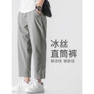WOODSOON冰絲九分褲夏季寬松直筒男生休閑潮流簡約涼感百搭男褲子