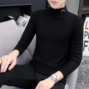 點我下載黑色打底小衫男秋冬款內搭薄款羊毛衫領子刺繡半高領修身毛線衣男