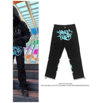 點我下載潮牌MinusTwocargos街頭印花多口袋寬松休閑嘻哈直筒長褲工裝褲男