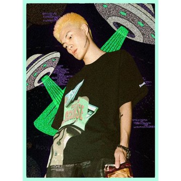 男款黑色概念性印花短袖T恤|8E9FJK3