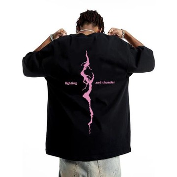 STA旗艦店美式復古閃電印花短袖ins潮牌重磅休閑寬松百搭純棉T恤