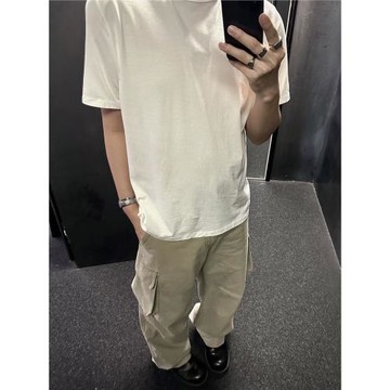 NEW TEE 日系寬松265G重磅純棉短袖T恤男夏季打底上衣純色休閑白T