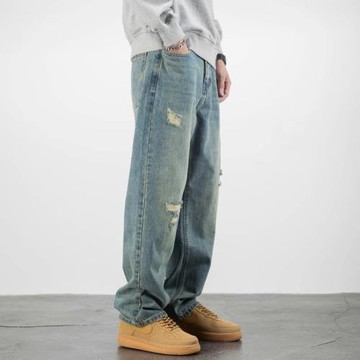 UNVESNO雅蘭物語 漸變破洞牛仔褲潮牌情侶復古休閒闊腿褲 TR-3135