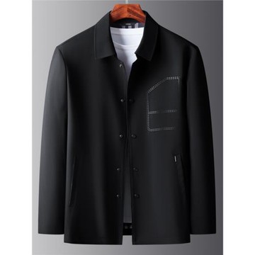 春秋季商務休閑男士翻領夾克無痕壓膠中年男裝寬松茄克外套爸爸裝