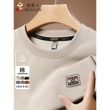 稻草人純棉衛衣男士圓領長袖t恤春秋新款中年寬松潮流休閑上衣男