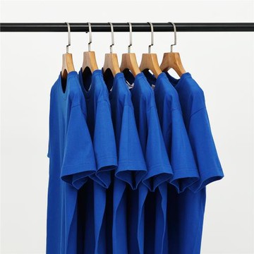 【小白家】全棉克萊因藍寶藍色重磅純棉純色短袖圓領t恤男女大碼T