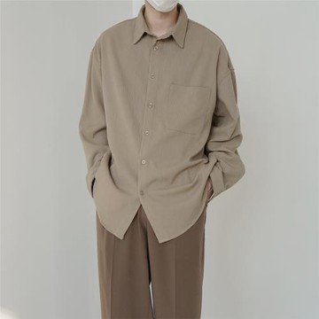 韓國單外貿男裝四季款男士休閑長袖襯衫麂皮貼肘補丁襯衣男襯衫潮