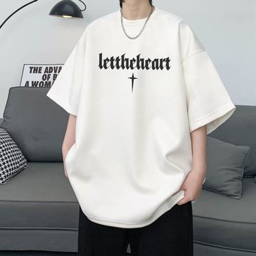 字母短袖t恤男夏季2025新款oversize純棉港風五分袖體恤潮牌潮流