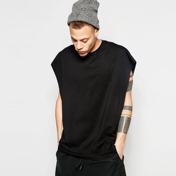 春夏季新款簡約百搭寬松無袖T恤落肩設計潮男青年蝙蝠衫男士T恤