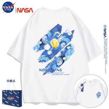 NASA聯名梵高星空短袖T恤男夏季新款潮流潮牌情侶純棉寬松體恤女