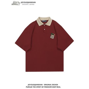 日系小眾設計卡通蔬果刺繡字母印花短袖POLO衫寬松男女嘻哈半袖衫