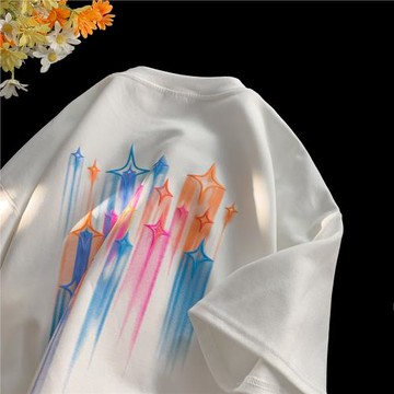 星星涂鴉重磅t恤男夏季潮牌寬松情侶短袖歐美復古純棉半袖體恤衫