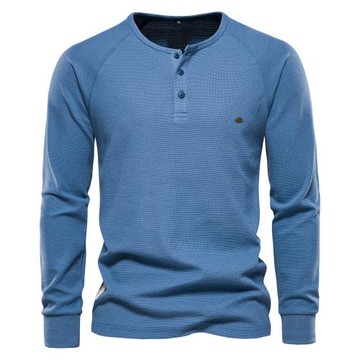 Men's T-shirt Jacket男長袖亨利領華夫格擦肩袖T恤衫修身打底衫