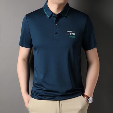夏季高級感冰絲短袖t恤男翻領透氣速干衣中年無痕男裝半袖體恤衫