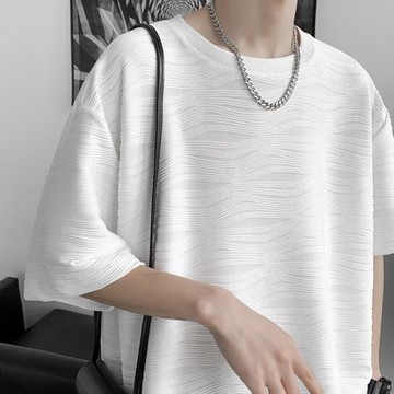 華夫格短袖t恤男夏季新款寬松五分袖上衣oversize美式高街體恤衫