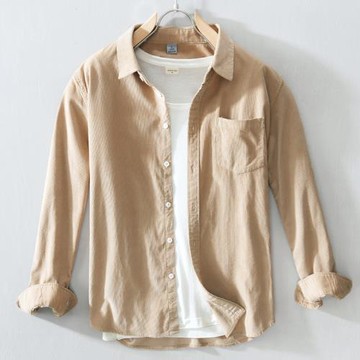 點我下載春秋男士長袖燈芯絨襯衫翻領純棉襯衣潮青年純色工裝寸衫男裝