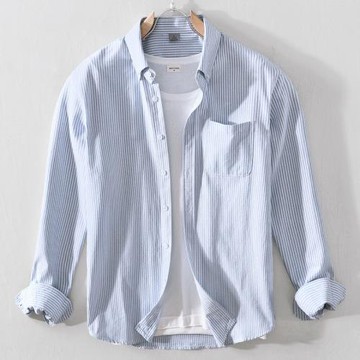 春秋男士長袖條紋襯衫翻領純棉襯衣日系青年職業休閑工裝寸衫上衣