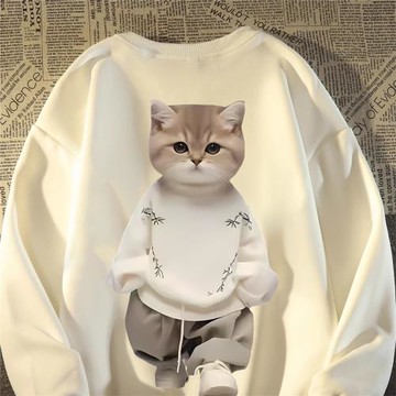 美式復古貓咪印花衛衣男女春秋款高街潮牌oversize情侶套頭外套薄