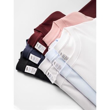 早秋長袖T恤男士新疆精梳棉純白色寬松休閑重磅純棉打底衫內搭女