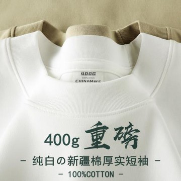 新疆棉400g重磅長絨棉純白色純棉短袖t恤夏季圓領寬松百搭打底衫