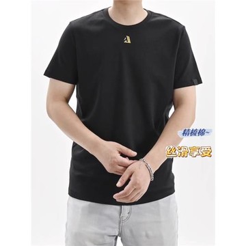 絲滑精梳棉男女短袖T恤ABLE JEANS潮黑色體恤衫圓領夏季百搭顯瘦